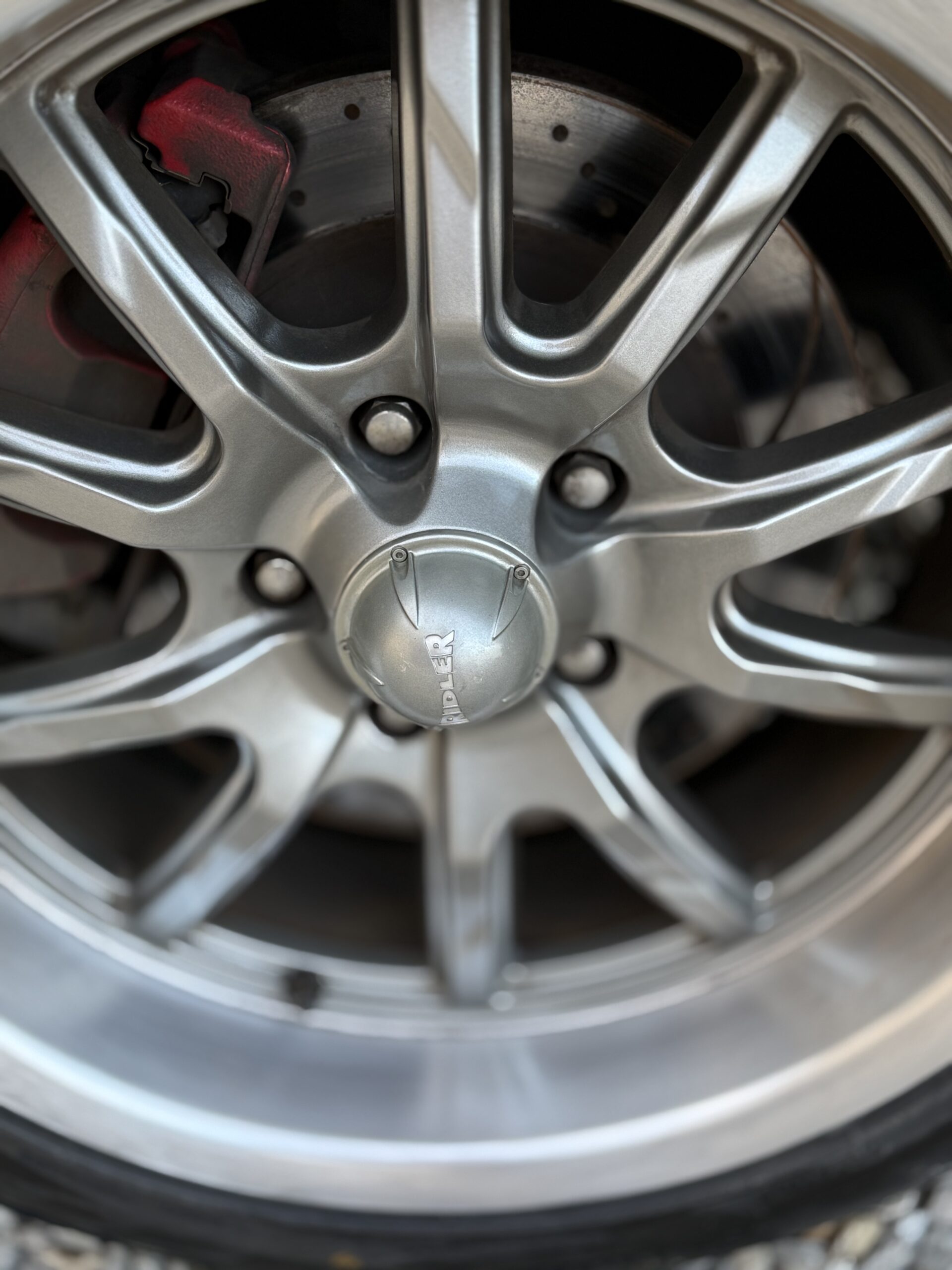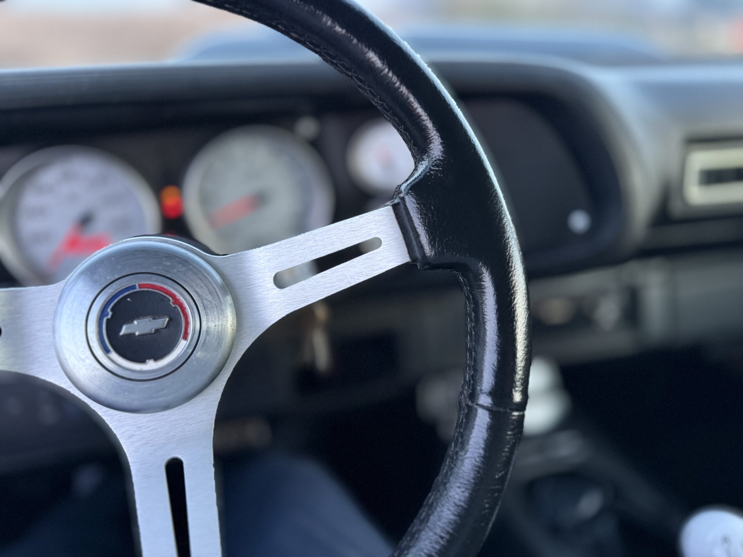 Corbeau Race Seats with 4 point harness. Slotted and Drilled Disc Brakes.  Pro Touring Hood.