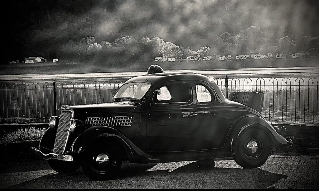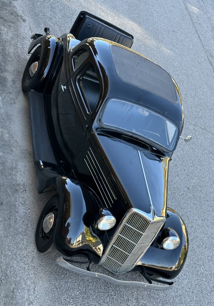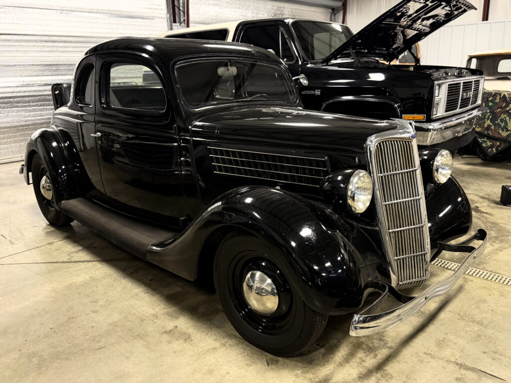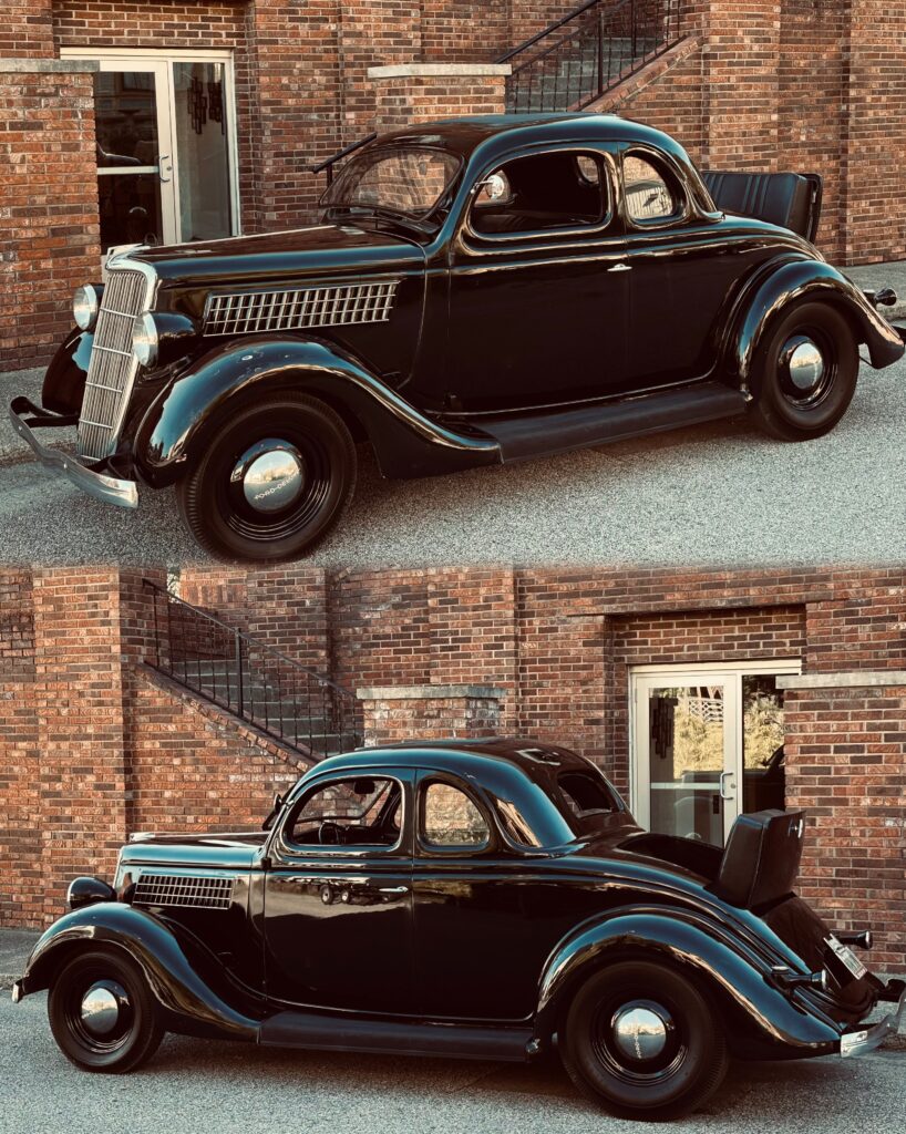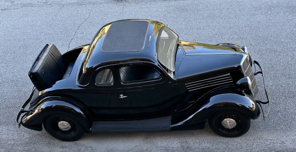 1935 Ford Rumble Seat Coupe, Straight and Solid.  Hopped Up…!  Aluminum Cheater Heads on 1950’s Flathead with Dual Carbs.  12v Conversion, Old Lacquer Paint!! Nice Black Interior, Drive Anywhere!  Amazing Car!