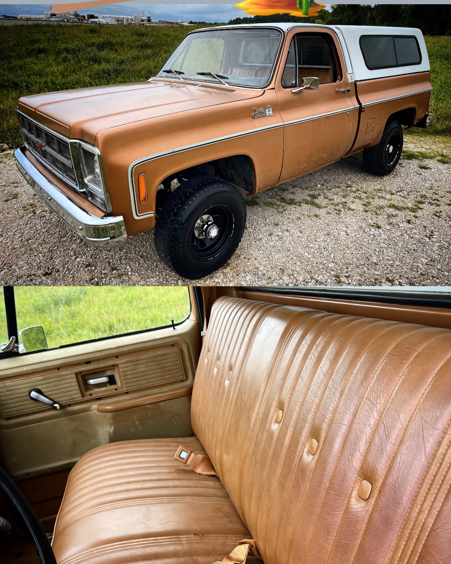 Our Favorite Sun Baked Patina Yet! So Worn Down and Smooth to the Touch! 1977 GMC Original Paint Shortbed Purchased From Original Owner Recently! Small Block with Headers, Automatic Transmission, PS, and PB. New 5/7 Drop on Staggered 20’s. Custom Interior and Vintage Air AC Optional!