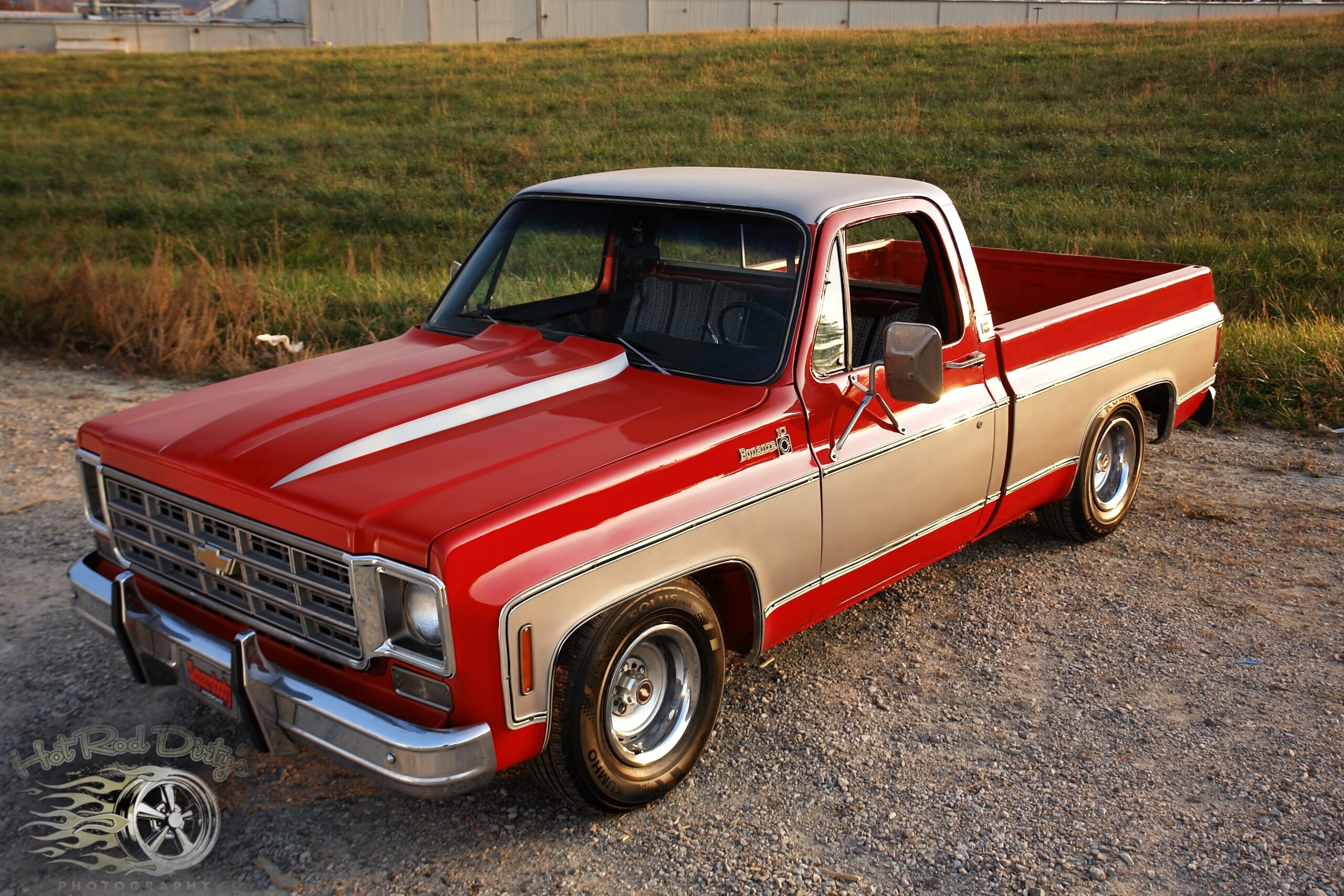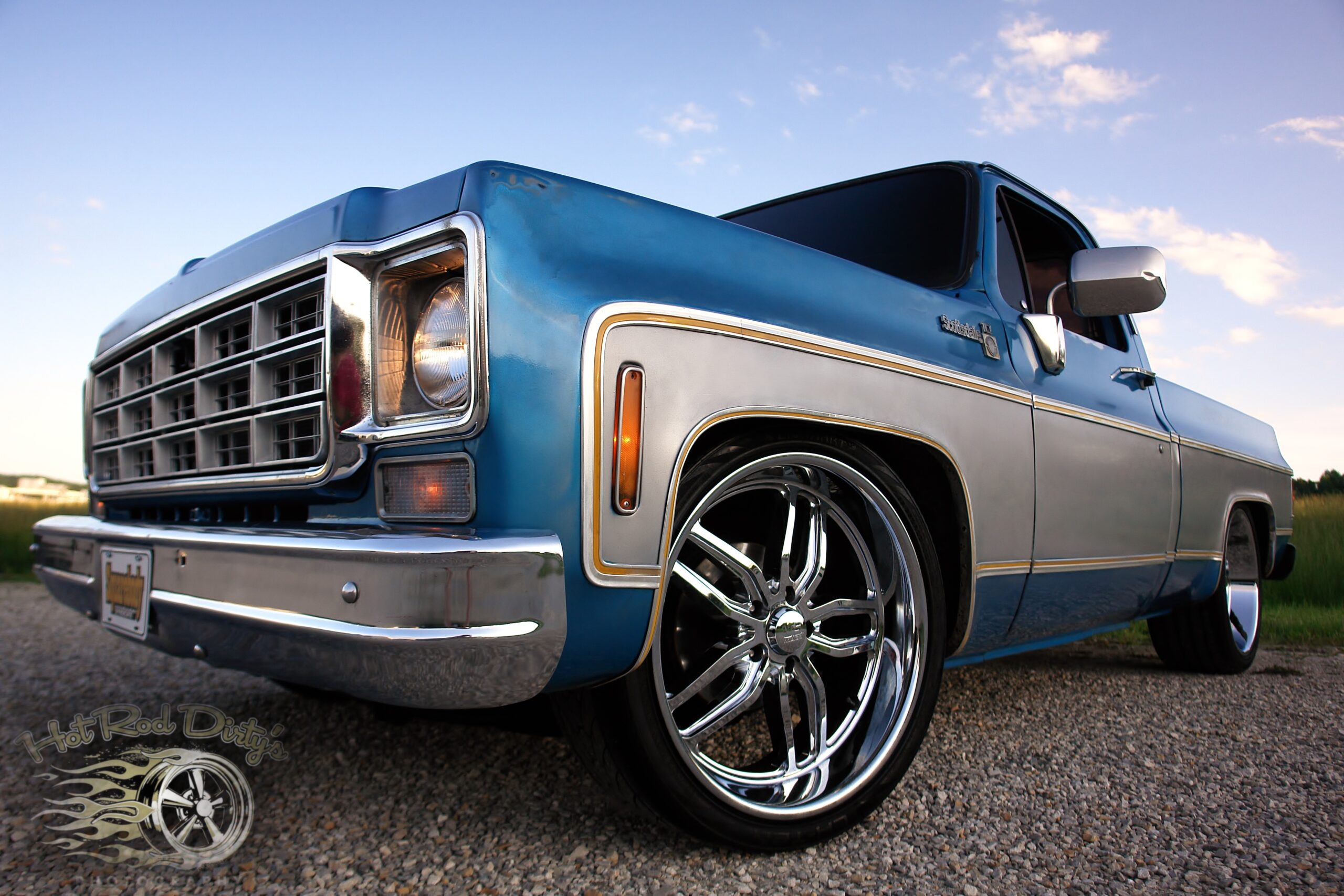 This one is HOT! SLICK 1977 Shortbed Squarebody Slammed Down to the Perfect Stance! SBC V8 and 350 Automatic. Clean Custom Black Interior w/ Console and Cupholders. New Cold AC!