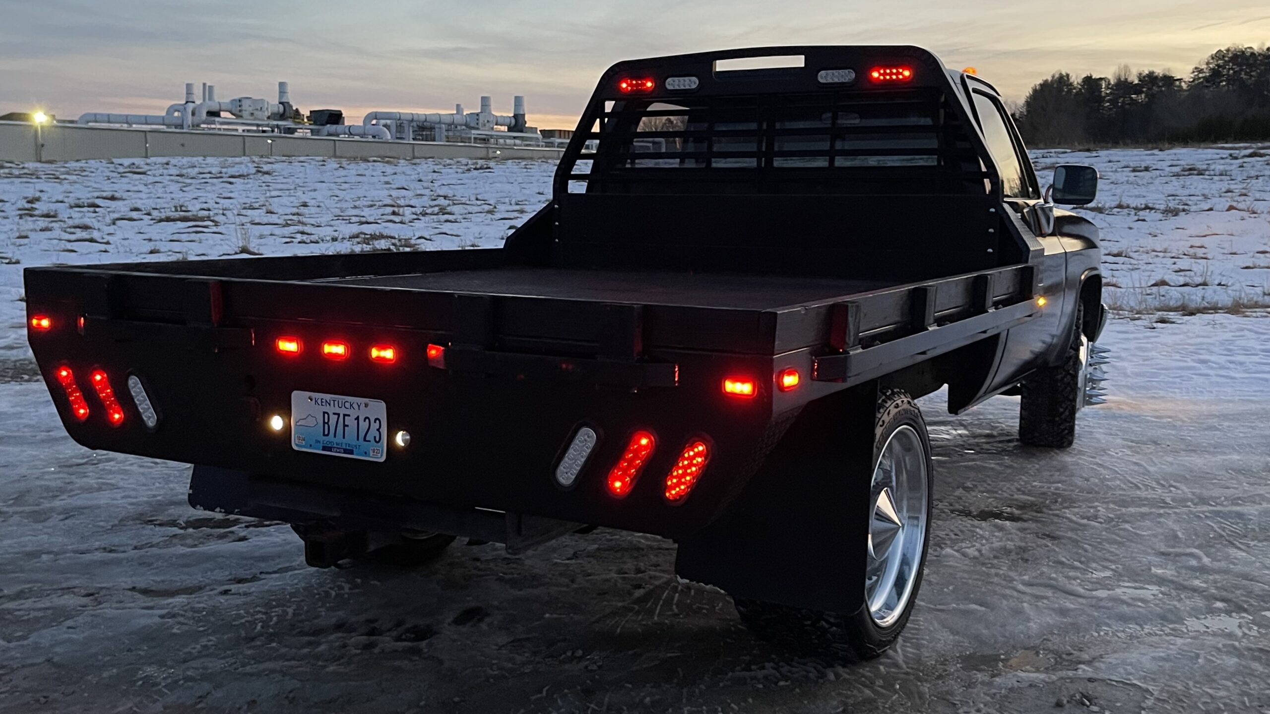 Tough and Rugged! Do Work in this 1987 Chevrolet 3500 with 350 V8 and 400Automatic! The Perfect Flatbed Shop Truck Dually with some Semi Wheels and a Big FAT REAR SUPER SINGLE! Gooseball and Reese Hitch, Removable Side Stakes on Bed. COLD AC! Stock Interior or We Can Take It Custom!