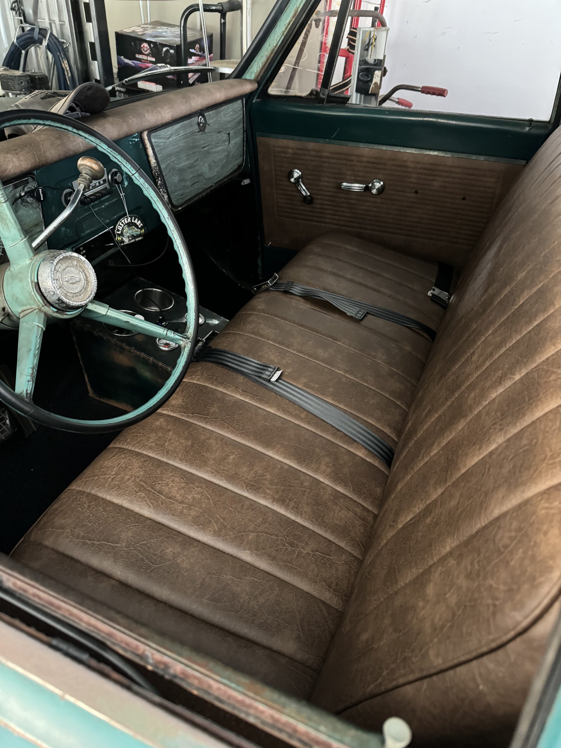 1969 Utility Bed C10! Rugged Yet Refined with Leather and Vintage Air AC on the Inside! One Amazingly Authentic Patina Showing Years of Use and Love, Making It Extremely Unique. Smooth 350 Running and Nicely Detailed 350 V8 w/ Recent Reseal. Brand New 700R4 Overdrive Automatic Transmission. New Rear End, Equipped with 3.73 Gears for Better Cruising Power Edelbrock Intake Manifold, New HEl Distributor, For smoother and more reliable ignition. Brand New Gas Tank. Hideaway Radio System, Mounted under the Seat. Everything Works! Full Custom Interior, Seat, Dash, and Door Panels all Done in Distressed Leather! Vintage Air, Heat and Cold AC!