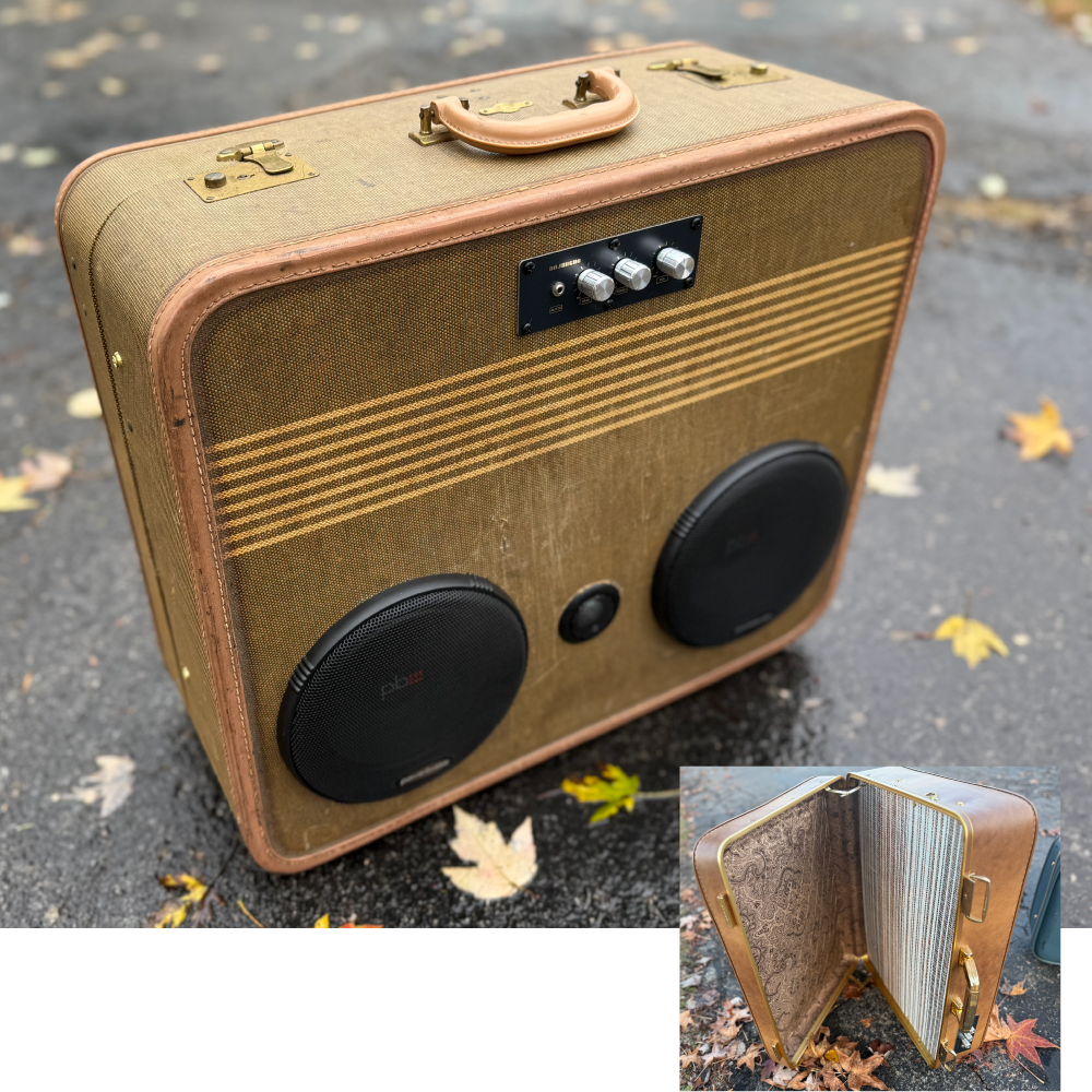 FULLY PORTABLE AND COMPLETELY WIRELESS BLUETOOTH SOUND SYSTEMS IN A VINTAGE SUITCASE