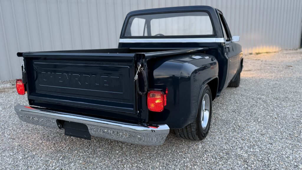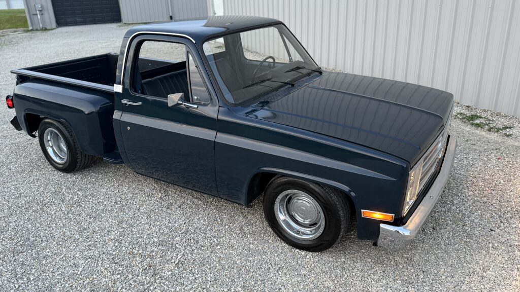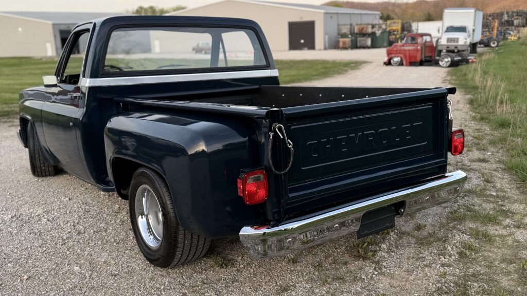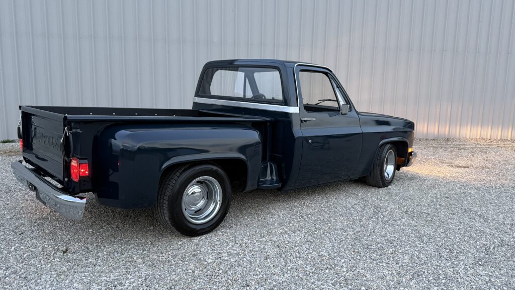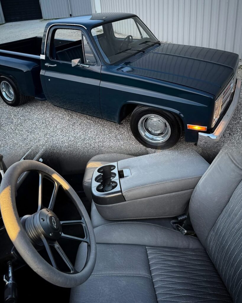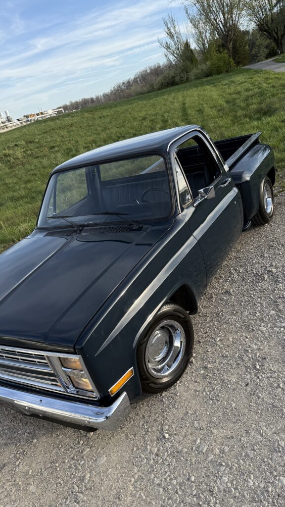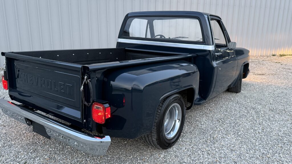 Hammered Hot Rod Stance on this 1984 LSx Swapped Stepper!  The Perfect Look!   5.3 LS with Automatic Transmission. New Blue Display Dakota Digital Gauges, New Paint and Full Custom High End Interior, Featuring Bucket Seats with Console.  Custom Bed Wood with Line-X Coated Sides.  Brand New Vintage Air Heat and Cold AC!