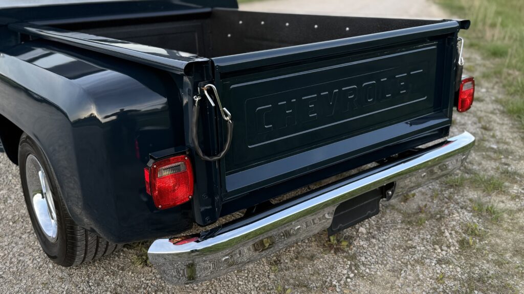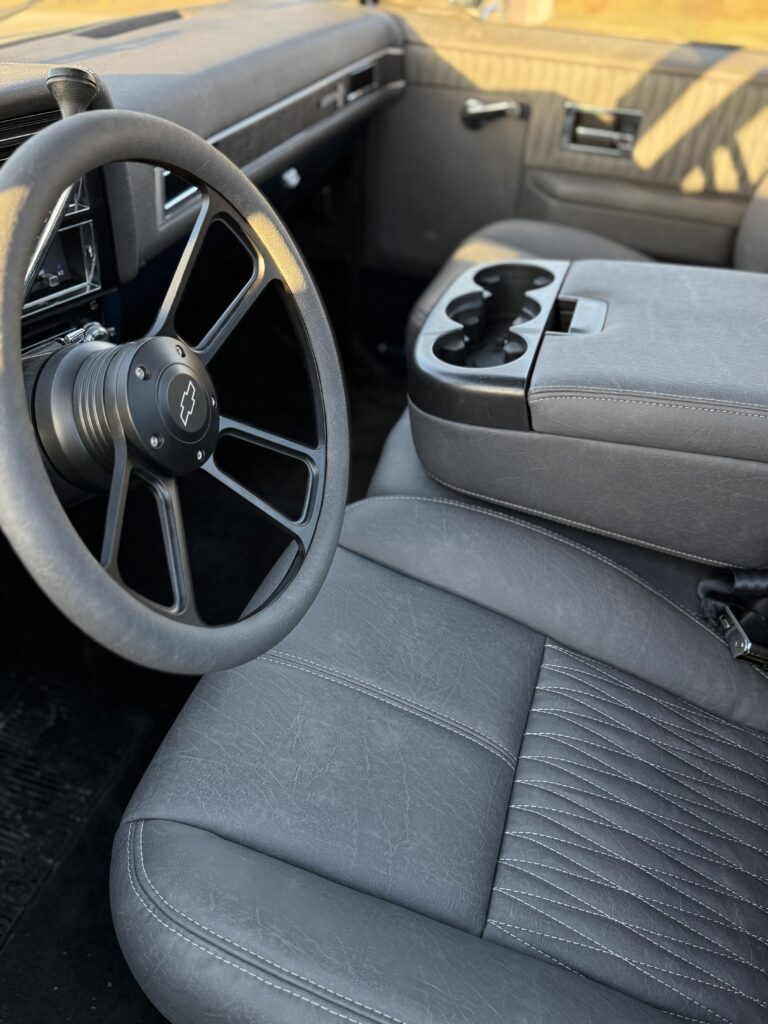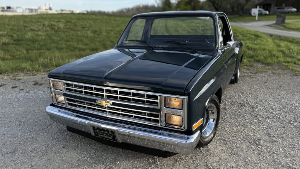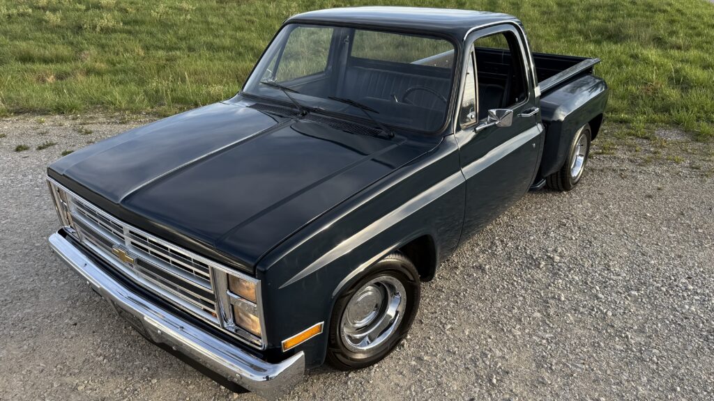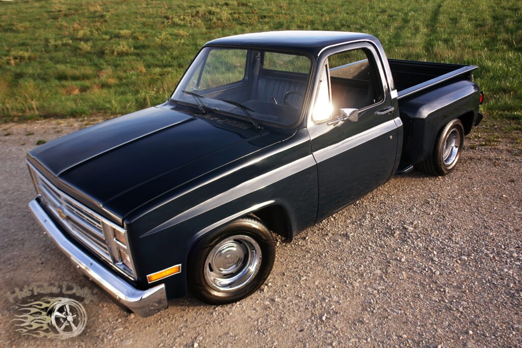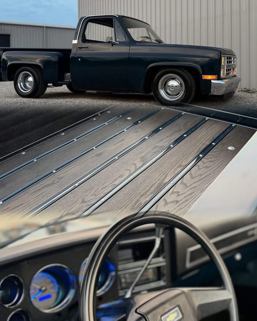 Hammered Hot Rod Stance on this 1984 LSx Swapped Stepper!  The Perfect Look!   5.3 LS with Automatic Transmission. New Blue Display Dakota Digital Gauges, New Paint and Full Custom High End Interior, Featuring Bucket Seats with Console.  Custom Bed Wood with Line-X Coated Sides.  Brand New Vintage Air Heat and Cold AC!