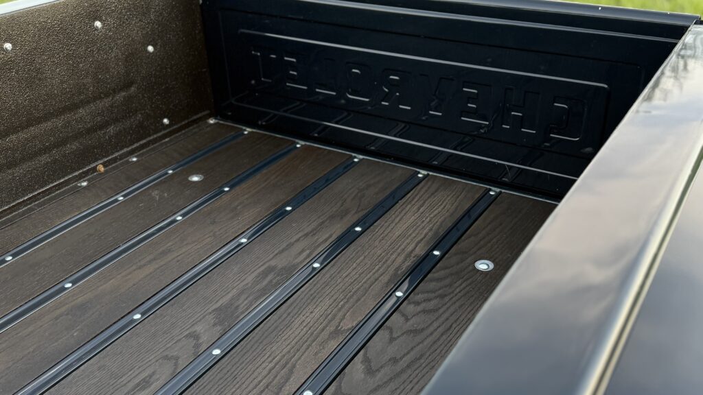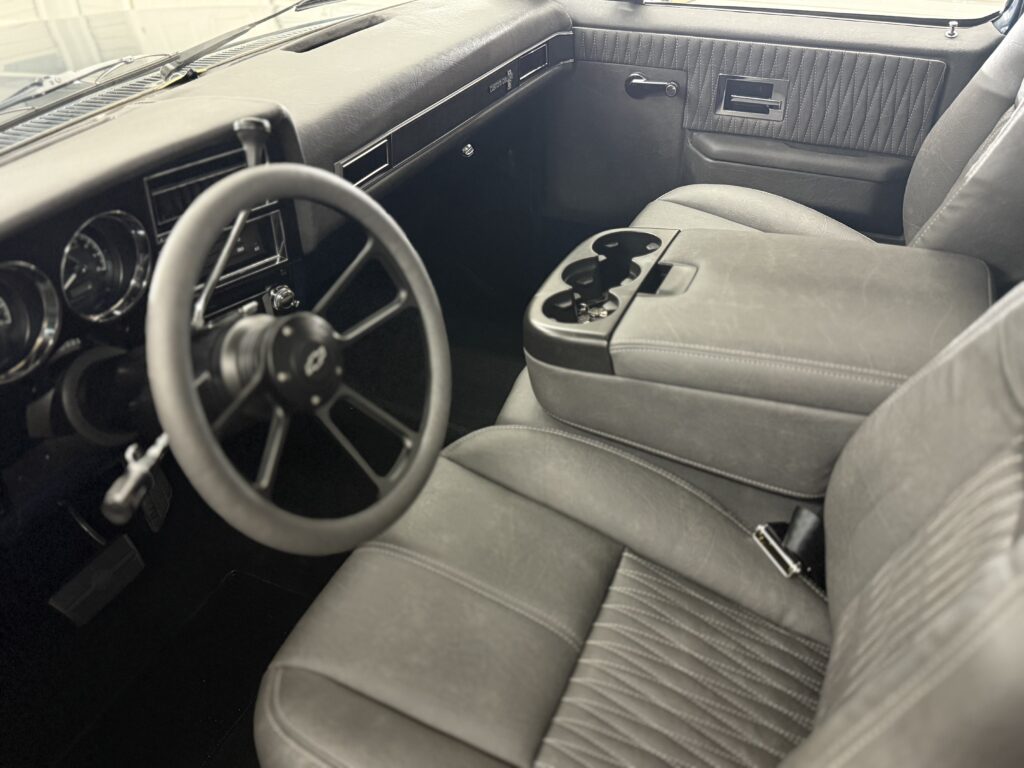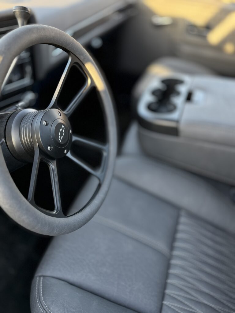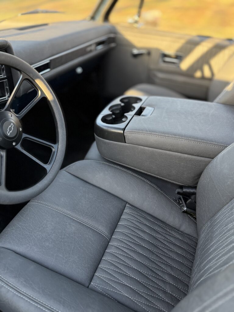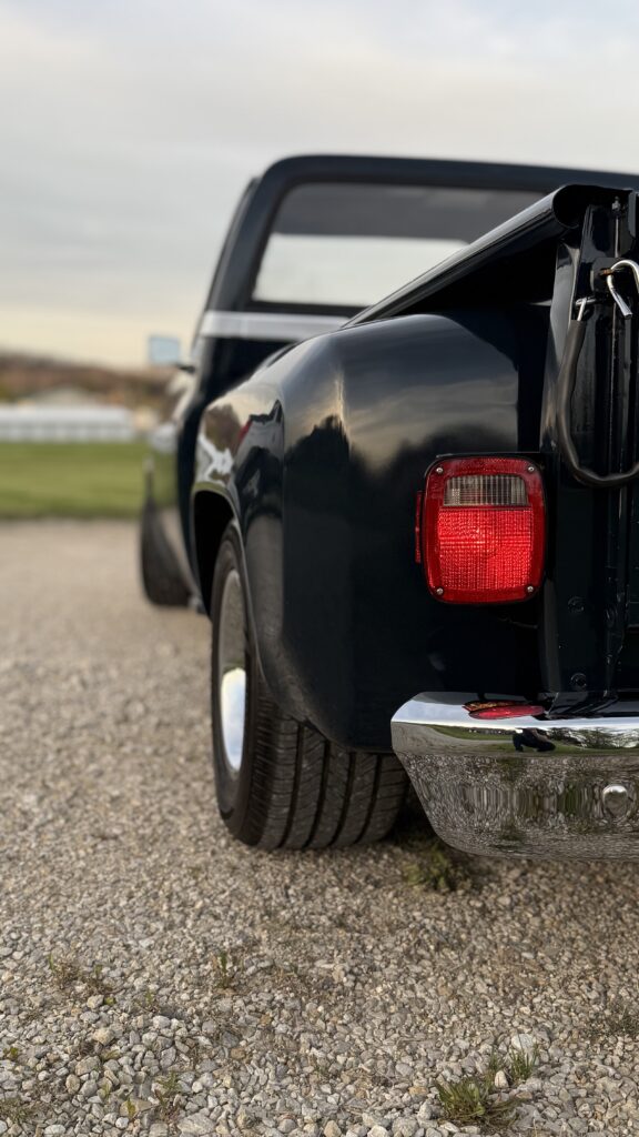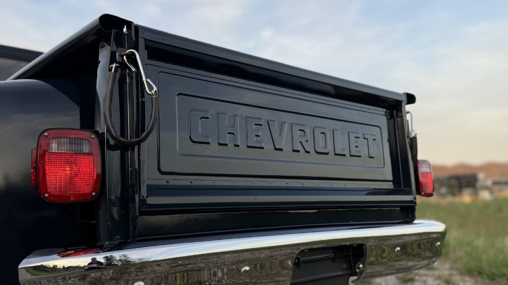 Hammered Hot Rod Stance on this 1984 LSx Swapped Stepper!  The Perfect Look!   5.3 LS with Automatic Transmission. New Blue Display Dakota Digital Gauges, New Paint and Full Custom High End Interior, Featuring Bucket Seats with Console.  Custom Bed Wood with Line-X Coated Sides.  Brand New Vintage Air Heat and Cold AC!