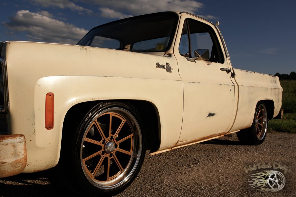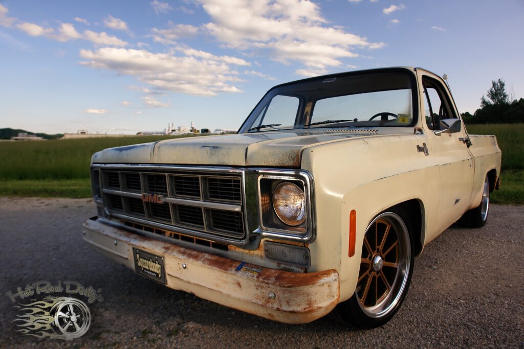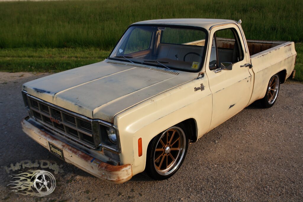 Our Favorite Sun Baked Patina Yet!  So Worn Down and Smooth to the Touch! 1977 GMC Original Paint Shortbed Purchased From Original Owner Recently!  Small Block with Headers, Automatic  Transmission, PS and PB.  New 5/7 Drop on Staggered 20’s.  Custom Interior and Vintage Air AC Optional!